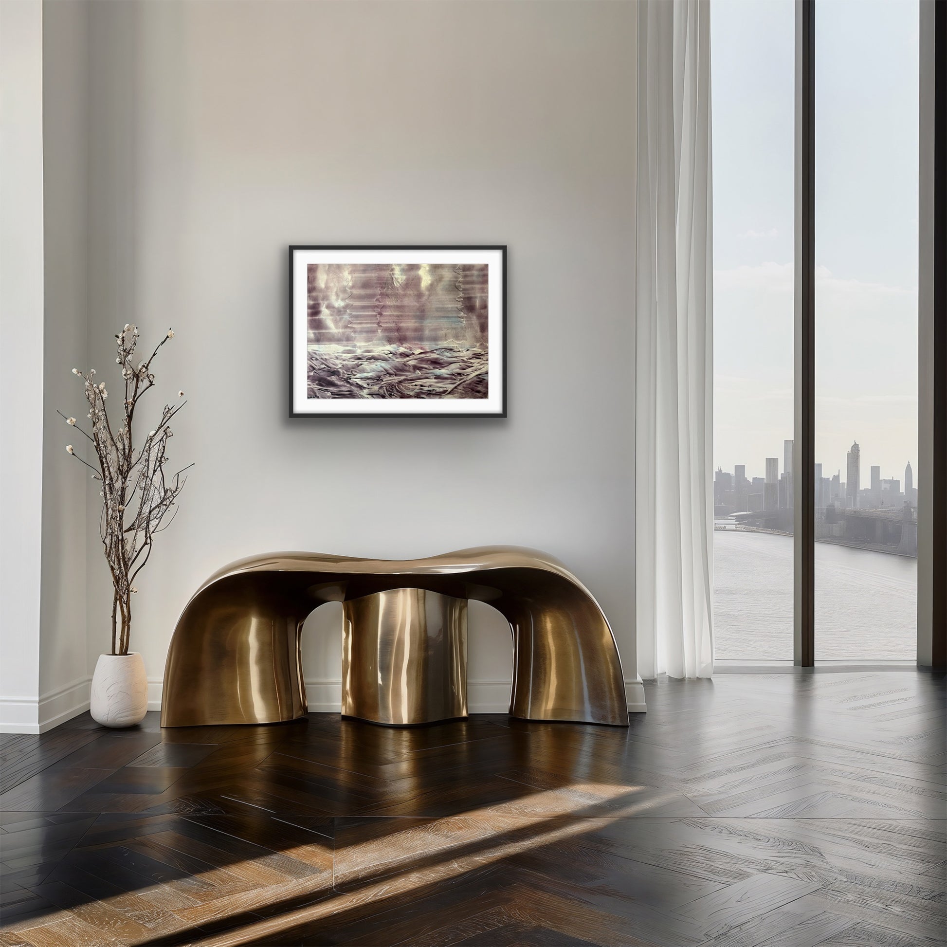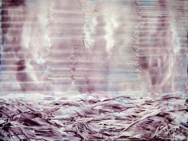Created during the artist’s experimental 1990s phase, the piece bridges his signature style of Intra-Realism with a more minimalist, vibration-based visual language — a precursor to today’s meditative and sound-responsive art. Its horizontal movement and celestial tone suggest both stillness and frequency — an invitation to attune, listen, and expand.