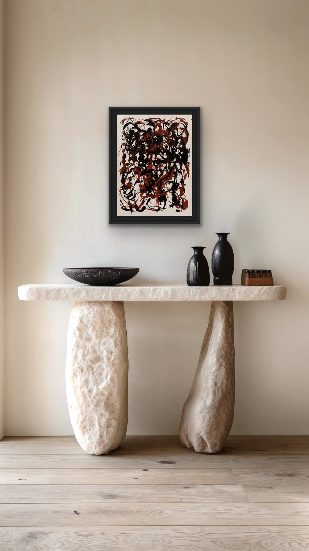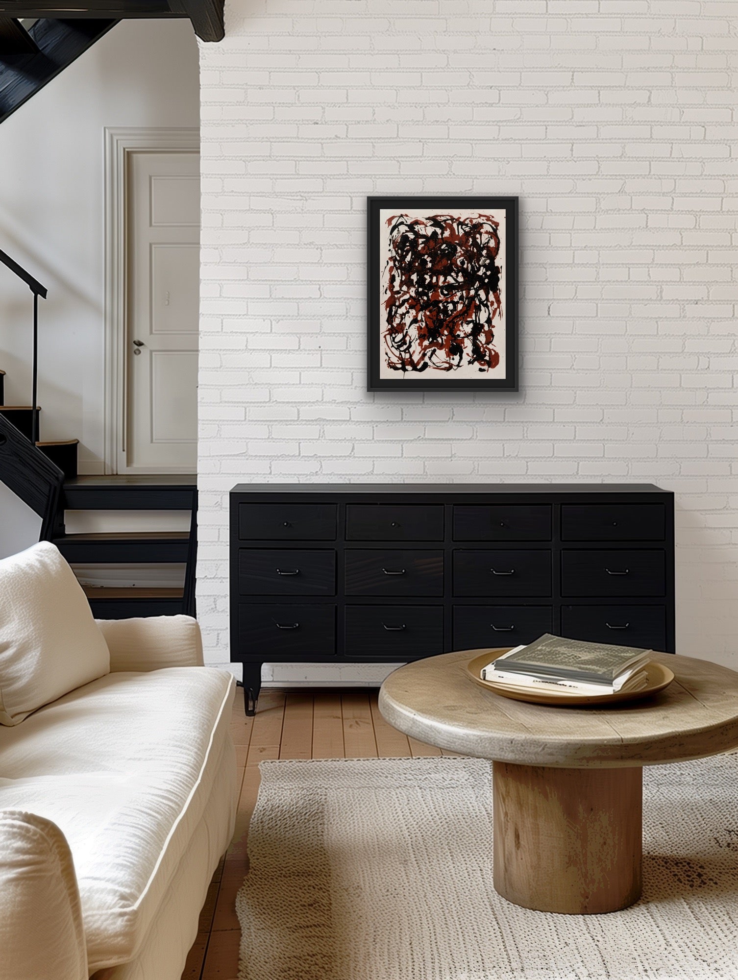 A dynamic maze of movement and emotion, Laberinto de encuentros (“Labyrinth of Encounters”) captures Guirado’s distinctive abstract expressionist style from the 1990s. Painted during a prolific period of introspective and symbolic exploration, this piece invites the viewer to journey inward — into spaces of complexity, connection, and catharsis.