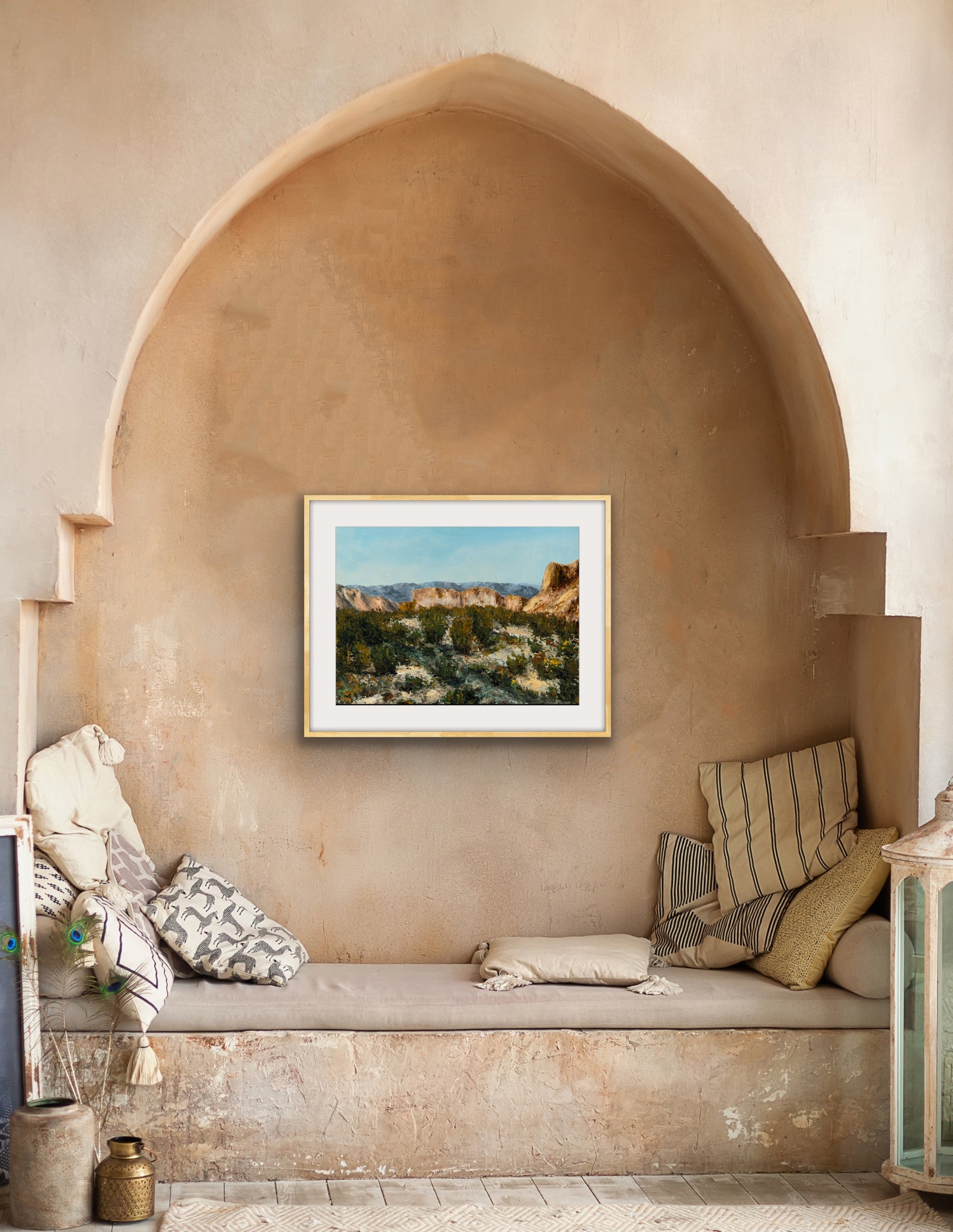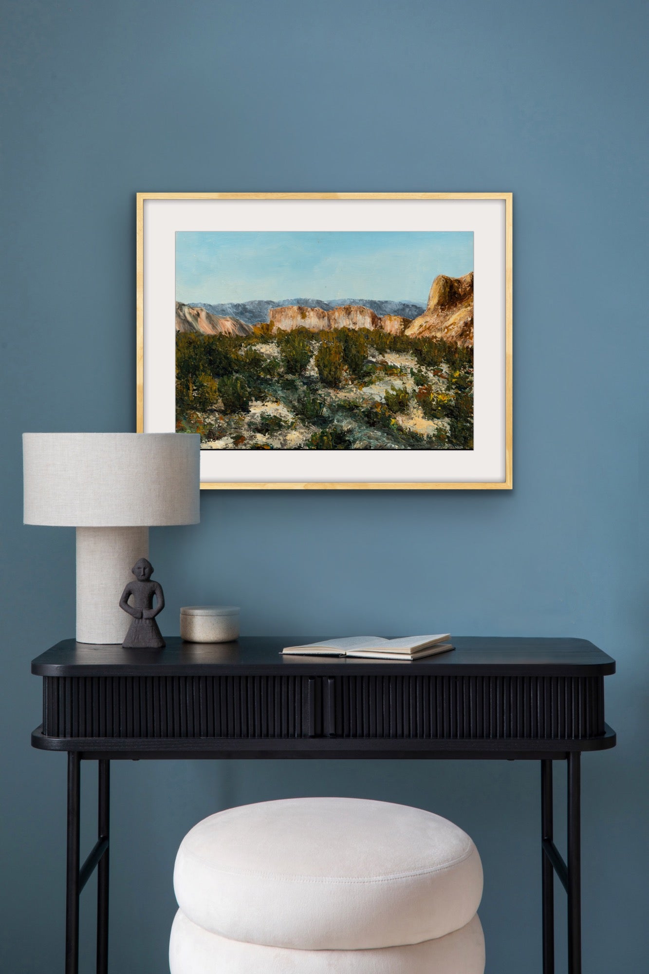 Monte bajo captures the wild, untamed beauty of Spain’s arid inland plains — a sun-scorched landscape of dry brush and ancient rock that speaks to Guirado’s deep emotional connection with his native Andalucía. Painted in 2008, this later work returns to his early plein-air roots while evoking a sense of stillness, solitude, and timeless observation. A soulful reflection of land and memory.