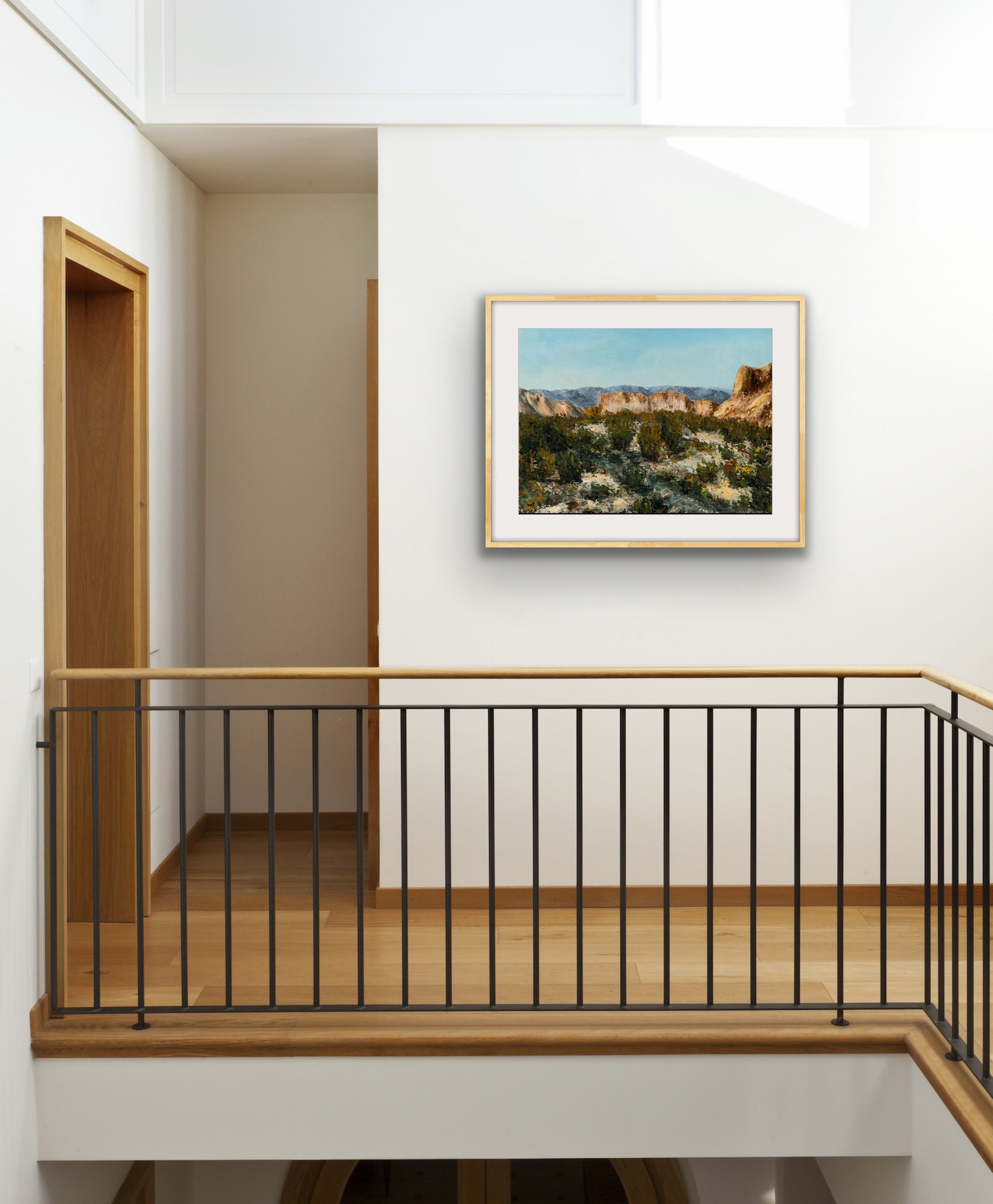 Part of Guirado’s “Landscapes of the Soul” series — a quieter counterpoint to his Intrarealist vision — this painting reveals the artist’s mastery of light and texture in natural settings, executed with an impasto-rich surface that rewards close viewing.